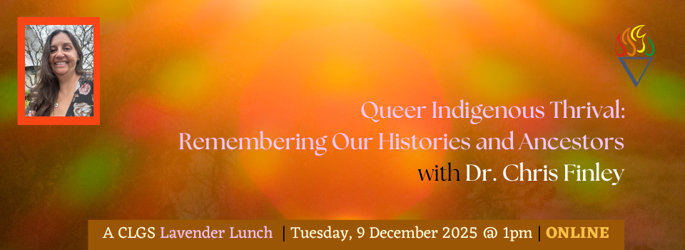 Click here to join this online CLGS Lavender Lunch via Zoom! Queer Indigenous/Two Spirit life has been in a biopolitical war of survival with the violent encroachment of heteropatriarchy and settler colonialism on our lands, spiritual practices, family formations, and education. How do we strive for thrival in times of survival? Is this even a […]