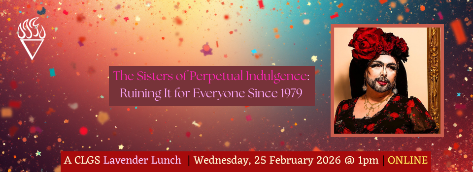 Click here to join this online CLGS Lavender Lunch via Zoom! Since their founding in San Francisco in 1979, the Sisters of Perpetual Indulgence have used drag, camp, public joy, and irreverent spirituality as tools for service, protest, and radical care. What began as a small group of queer men in habits has grown into […]